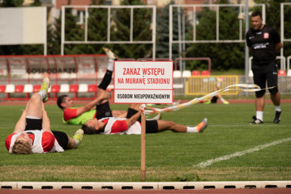 na murawie stadionu przy ul. Wyspiańskiego ekipa "biało-czerwonych"