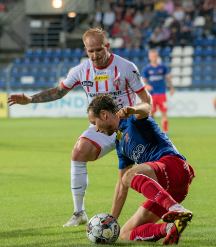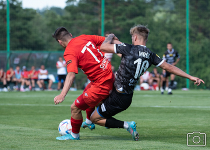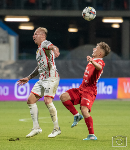 Wszędobylski Rafał Mikulec prawą stroną boiska starał się rozbić